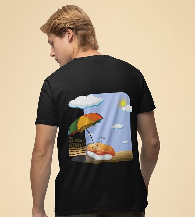 Shhh!!!: Sushi is Sleeping Graphic Printed Black T-shirt