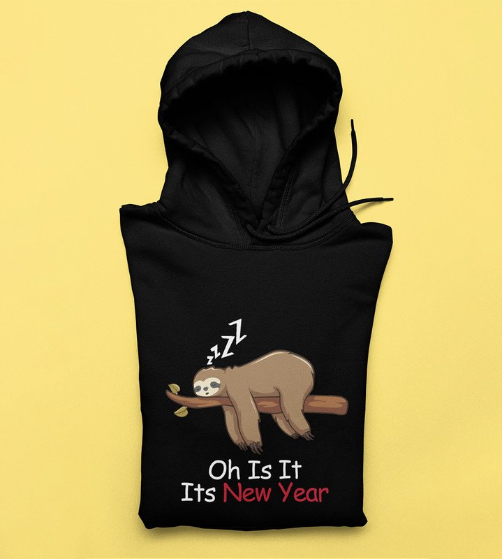 Sloth's New Year, Black Graphic Printed Hoodies For Mens Boys