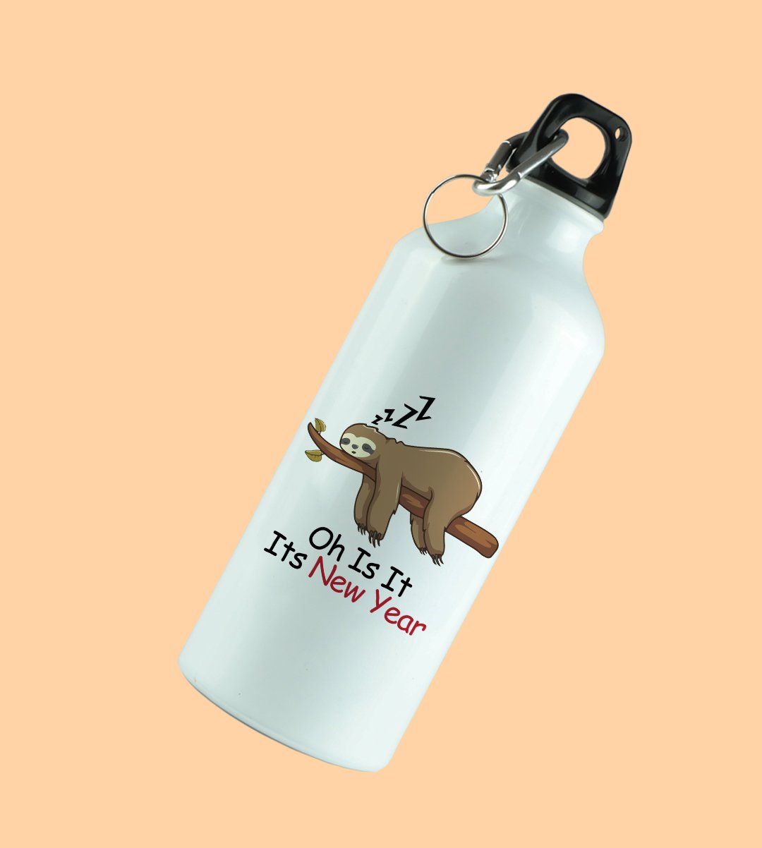 Sloth's New Year, Graphic Printed Sublimated Aluminium Water Bottle