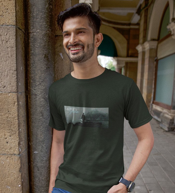 Taciturnity, Graphic Harmony: Green Modern Front Printed Round Neck Tee for Men