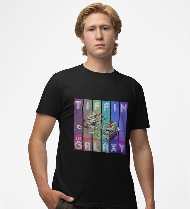 Tiffin in Orbit: Astronaut Lunchtime Galaxy Graphic Printed Black T-Shirt