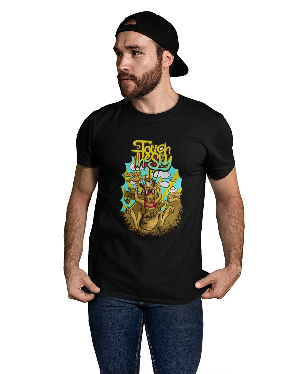 High Jump Kangaroo Black Round Neck Cotton Half Sleeved T-Shirt with Printed Graphics