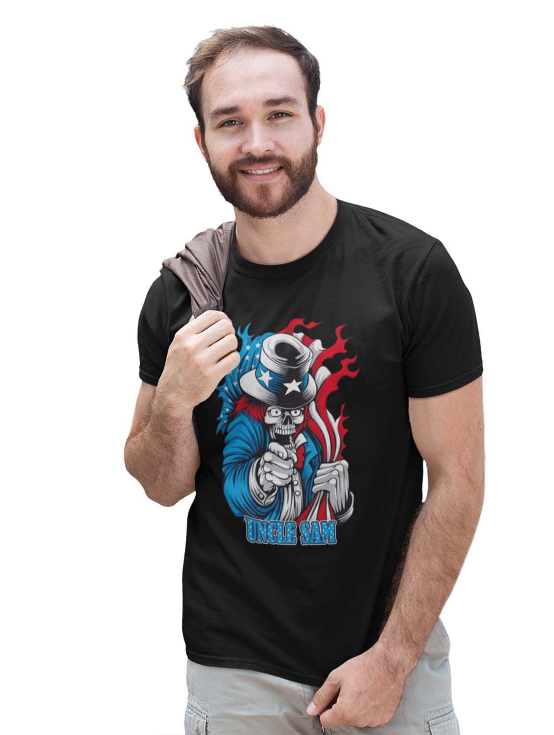 Uncle Sam Black Round Neck Cotton Half Sleeved T-Shirt with Printed Graphics