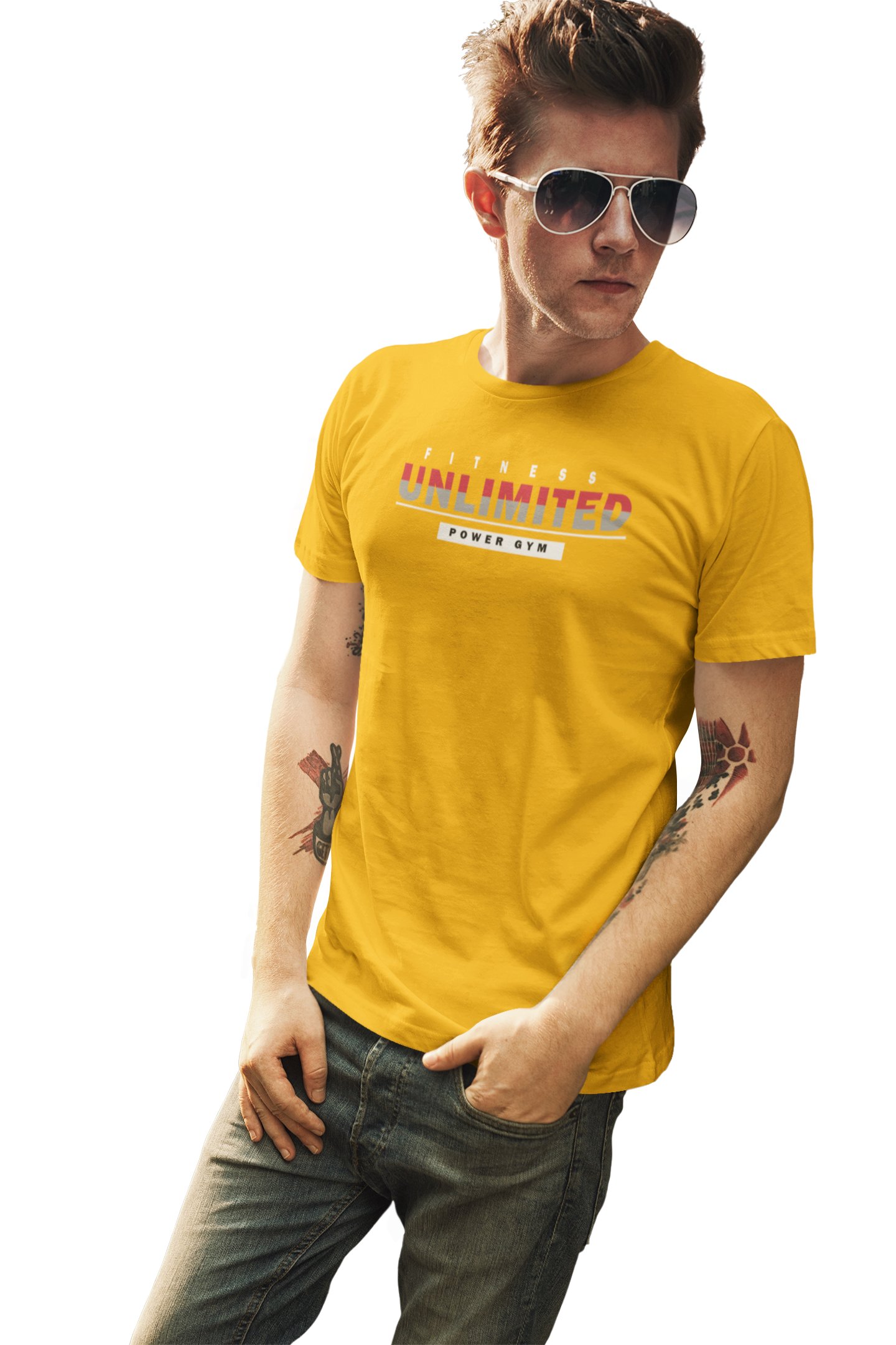 Unlimited In Two Colour Shades, Round Neck Gym Tshirt (Yellow Tshirt) - Foremost Gifting Material for Your Friends and Close Ones
