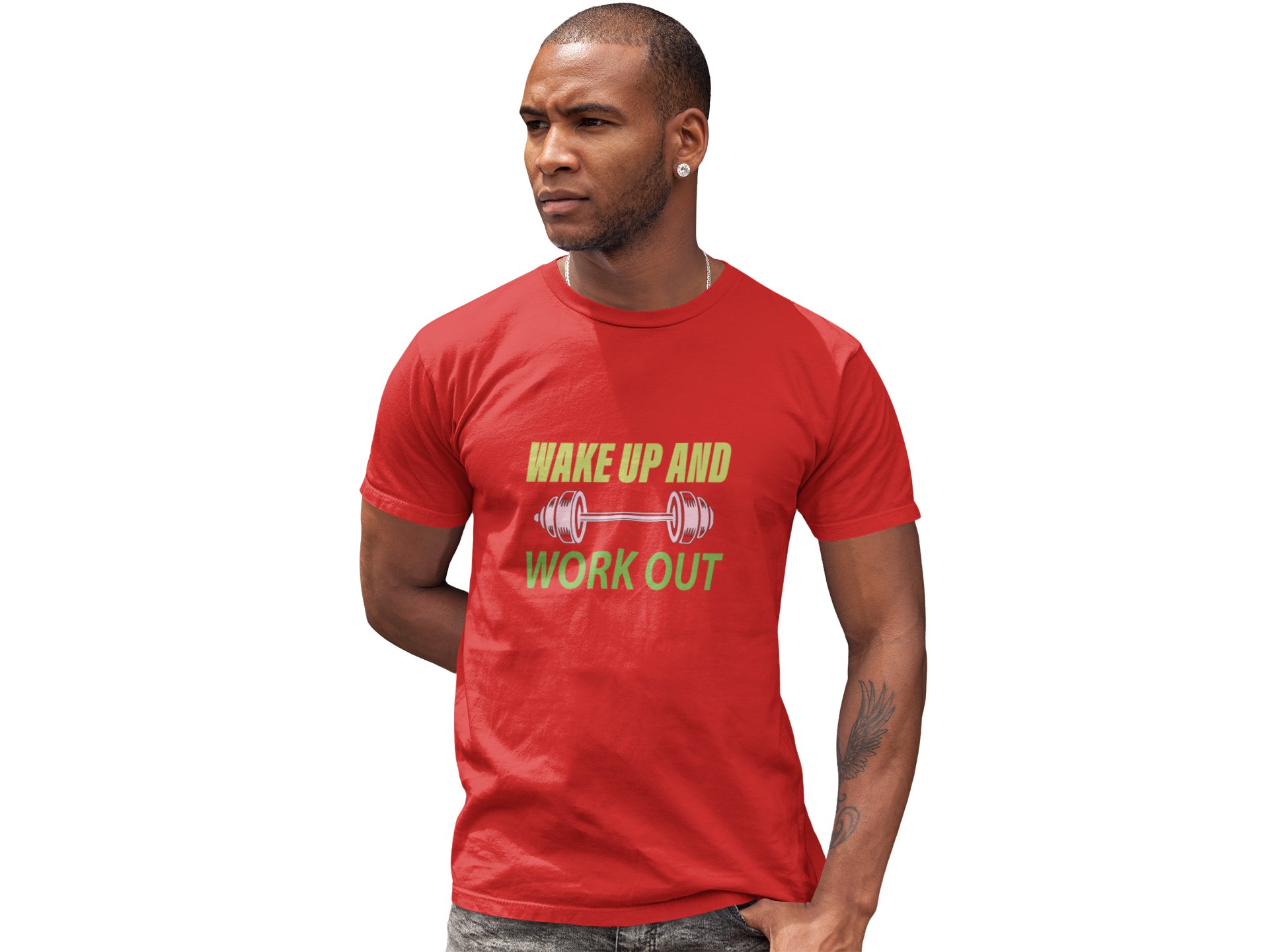 Wake Up and Work Out, (BG Green), Round Neck Gym Tshirt (Red Tshirt) - Clothes for Gym Lovers - Suitable for Gym Going Person - Foremost Gifting Material for Your Friends and Close Ones