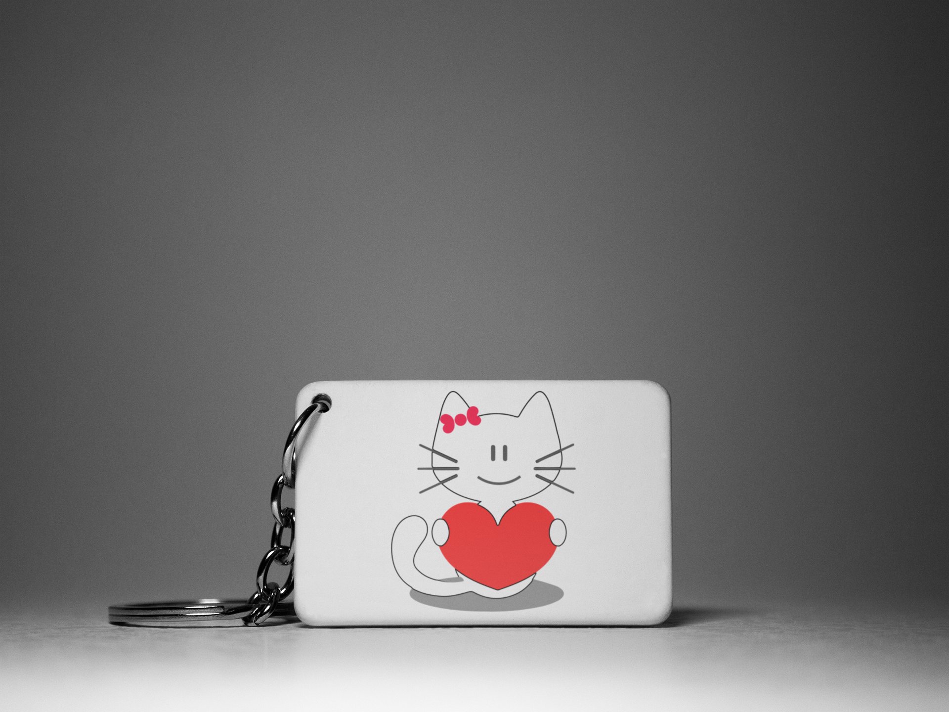 White Cat With Red Heart -White -Valentine's Special Keychains(Pack Of 2)