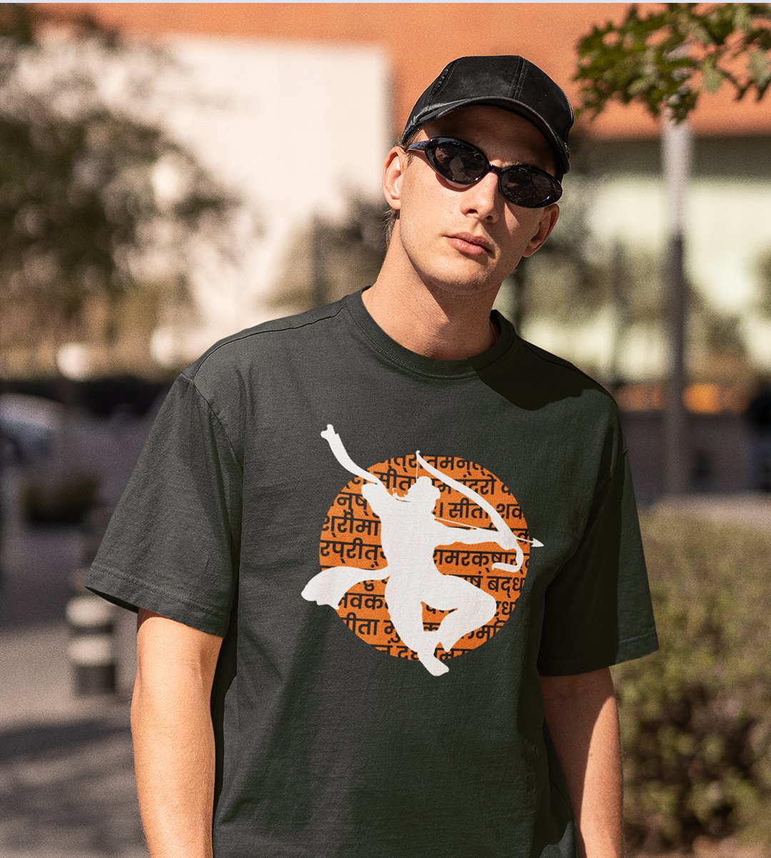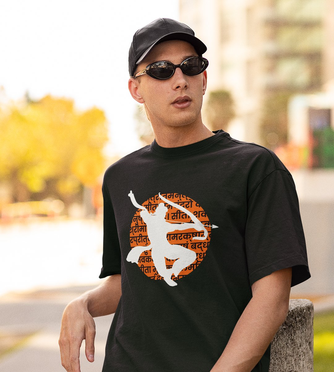White shadowed Shree Ram printed unisex adults round neck cotton half-sleeve black tshirt specially for Navratri festival/ Durga puja