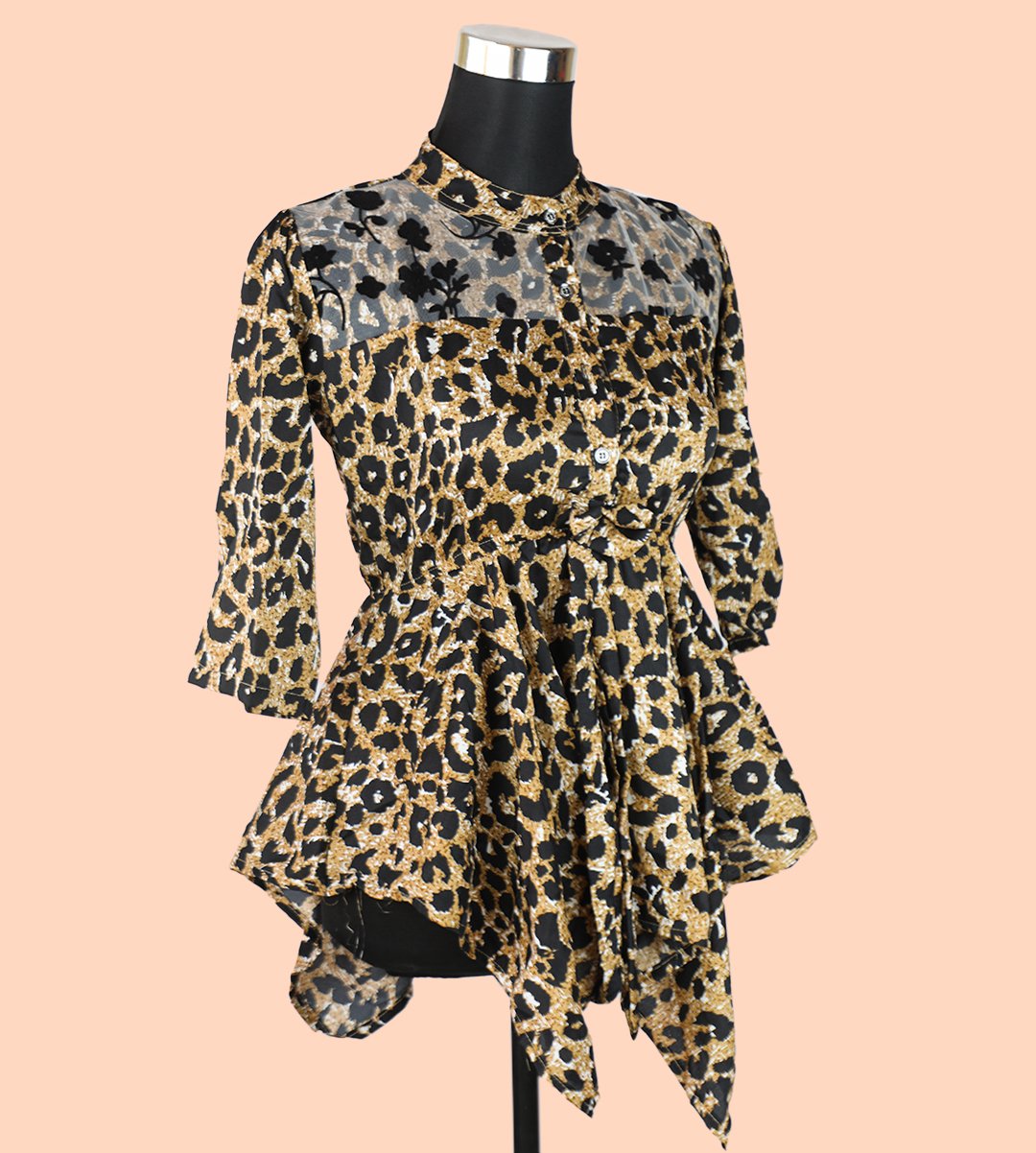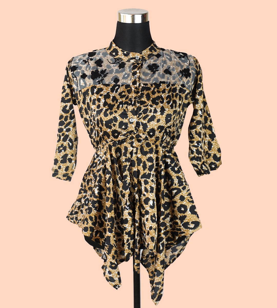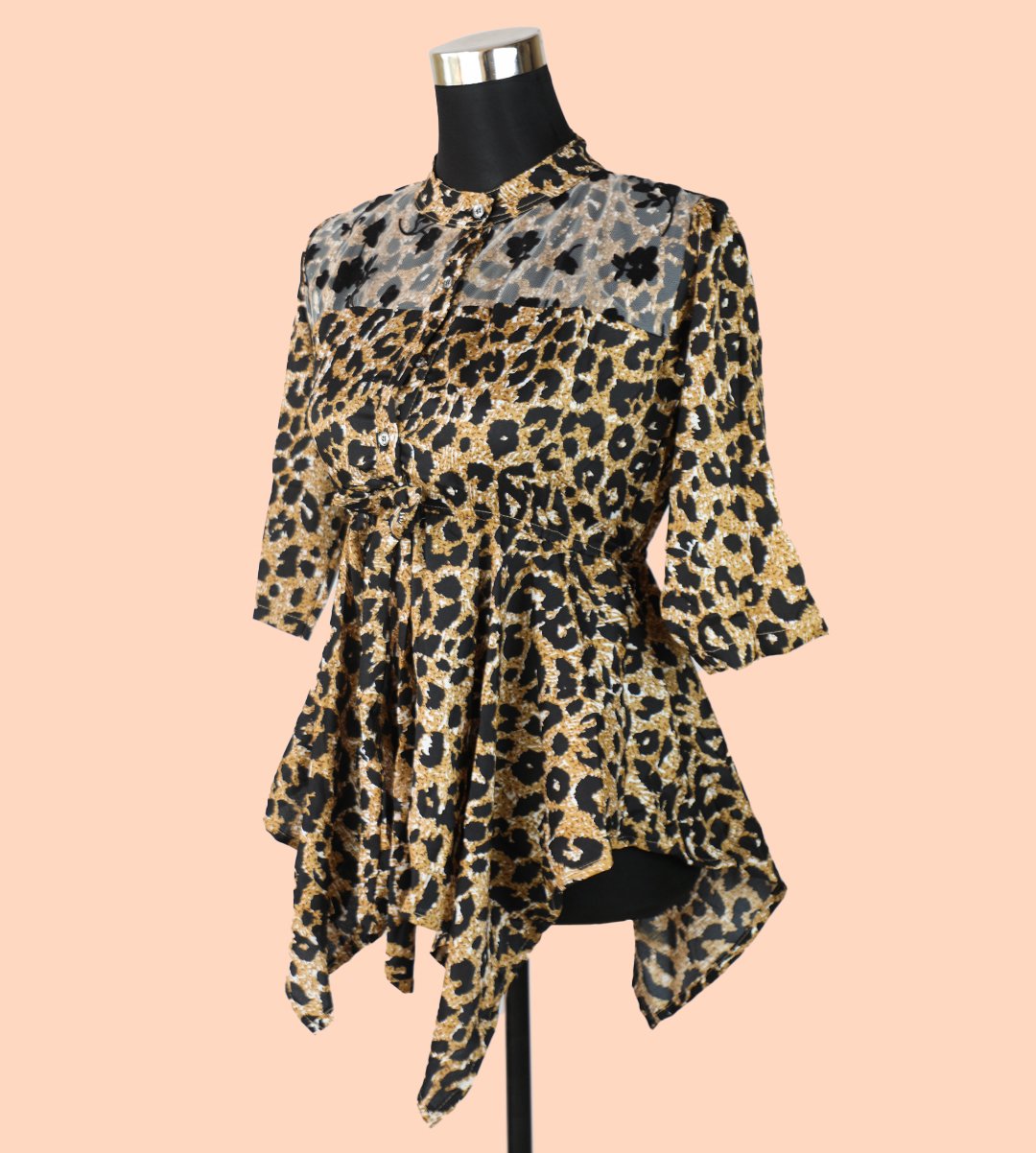 Unleash your wild side with our Women's Top featuring a striking Leopard Skin Print. This top showcases a classic round neck design and offers a regular fit, making it ideal for various occasions. Crafted from soft Rayon fabric, it combines style and comfort. The Leopard Skin Print adds a touch of bold elegance to your look