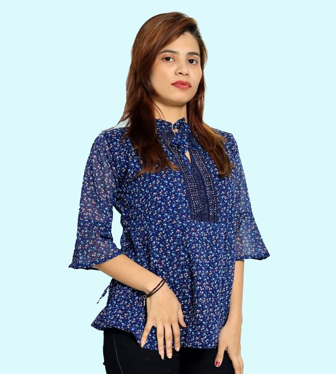 Women loves to wear top of any age groups. The fashion is not only limited upto young girls / teenagers but some married women also love to wear it. The recognization of top is very much popular in 21st century. It is used by the modernized ladies. Easy to wear. It looks good with jeans or jeggings. We have brought you a full collection of floral designs printed top to choose from. This is made up of Rayon and designed for your plesant and cozy.