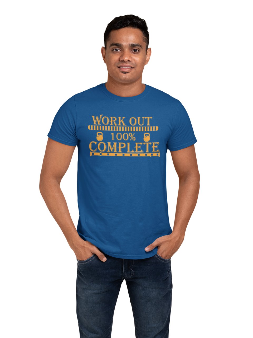 Workout 100% Complete Round Neck Gym Tshirt - Clothes for Gym Lovers (Blue Tshirt) - Suitable for Gym Going Person - Foremost Gifting Material for Your Friends and Close Ones